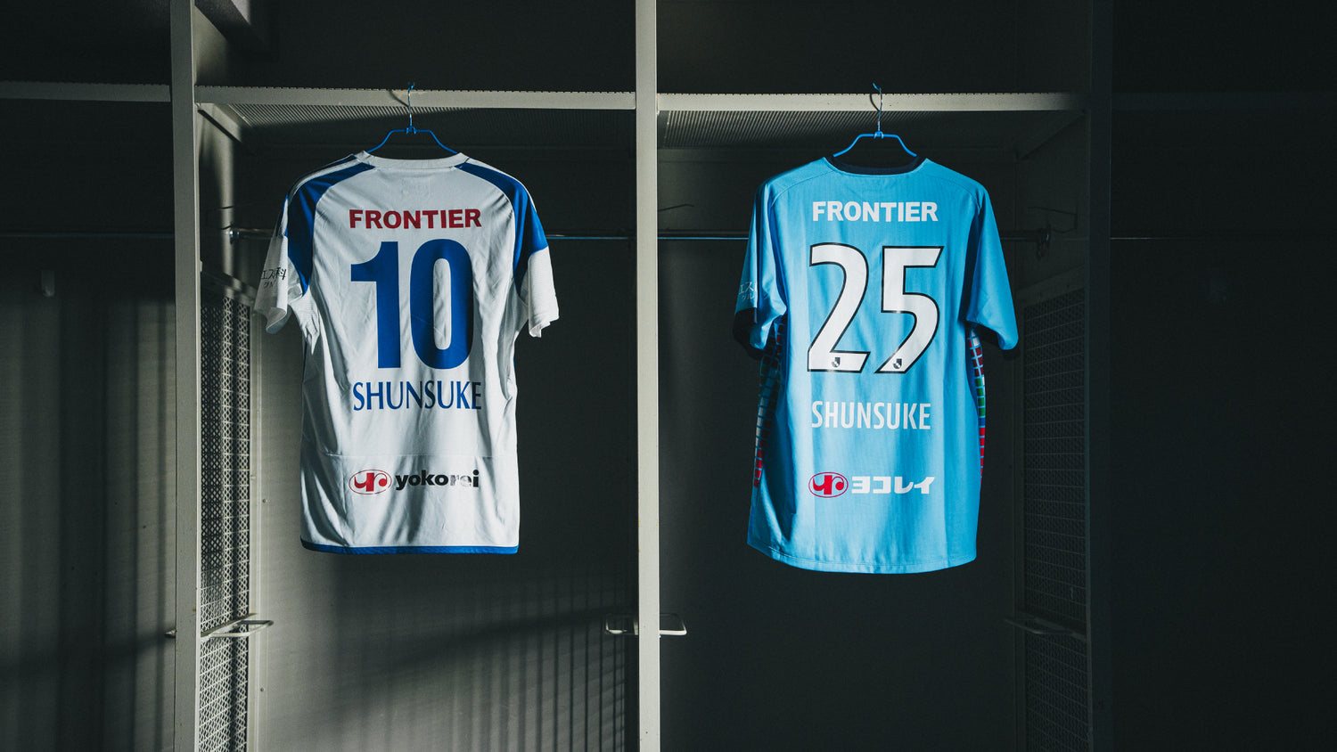 クラブカラーの「HAMABLUE」をベースカラーにサイドの部分には、所属した6クラブへの感謝を伝えたいという中村俊輔氏の想いを汲み取り、6クラブのクラブカラーを年代順に並べ、プロ26年の歴史を表現。俊輔氏が愛したもう一つの背番号「25」を背負い、26年間の想いが詰まったユニフォームを纏う。